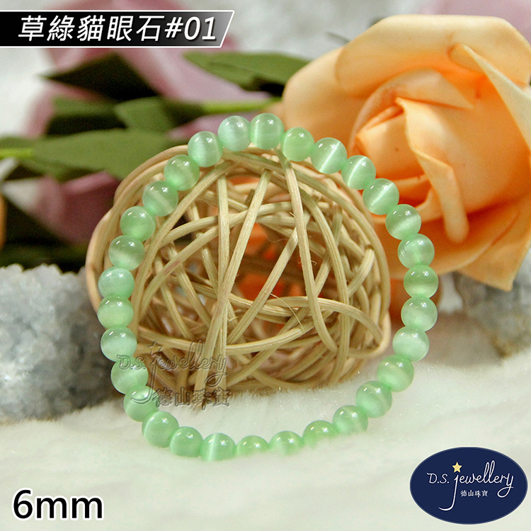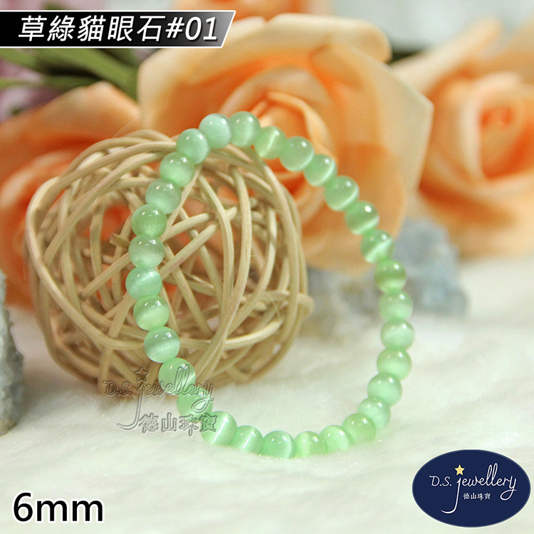 材質:5A級6mm草綠貓眼石