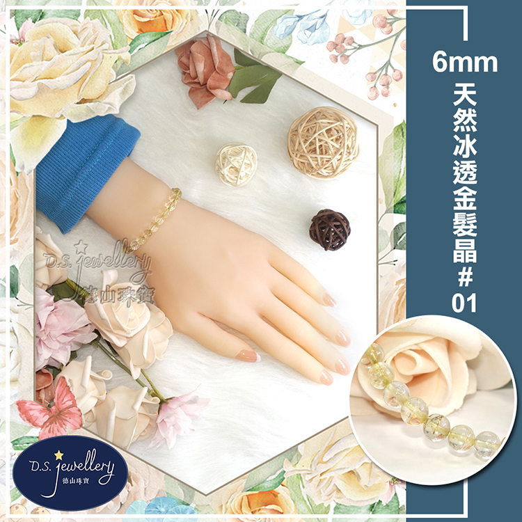 名稱:【德山珠寶】5A級6mm天然冰透金髮晶水晶造型手鍊(CE476)