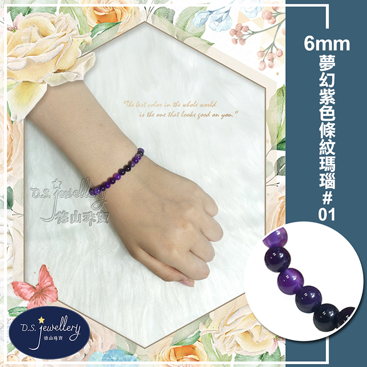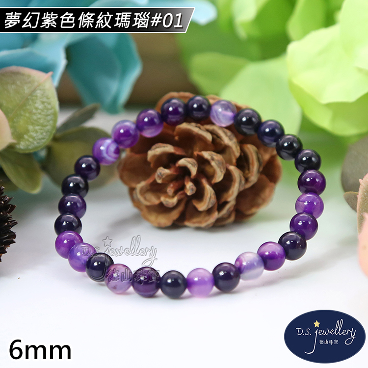 名稱:【德山珠寶】5A級6mm夢幻紫色條紋瑪瑙造型手鍊(CE476)