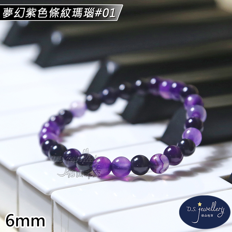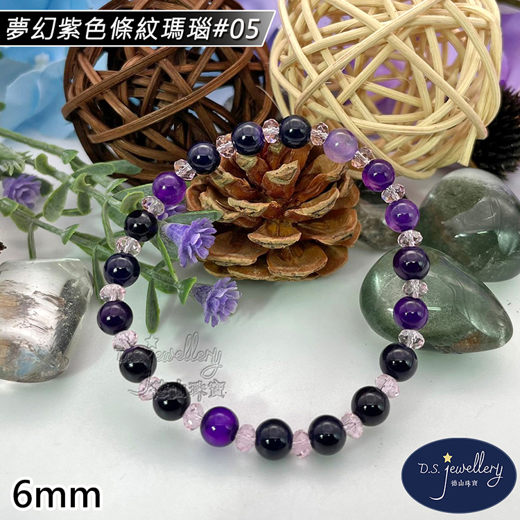 材質:5A級6mm夢幻紫色條紋瑪瑙