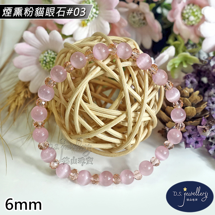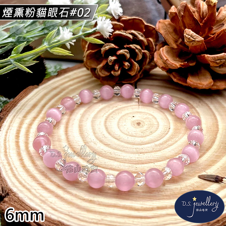 【德山珠寶】5A級6mm煙熏粉貓眼石造型手鍊(CE476)