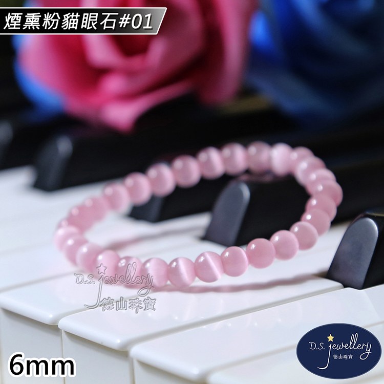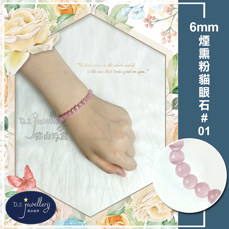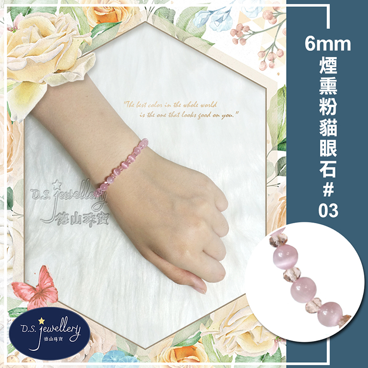 名稱:【德山珠寶】5A級6mm煙熏粉貓眼石造型手鍊(CE476)