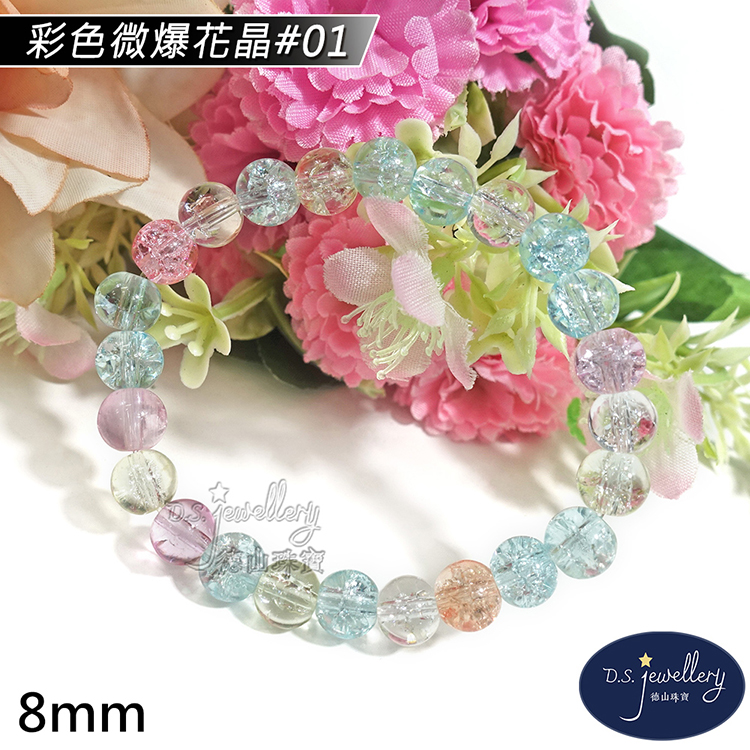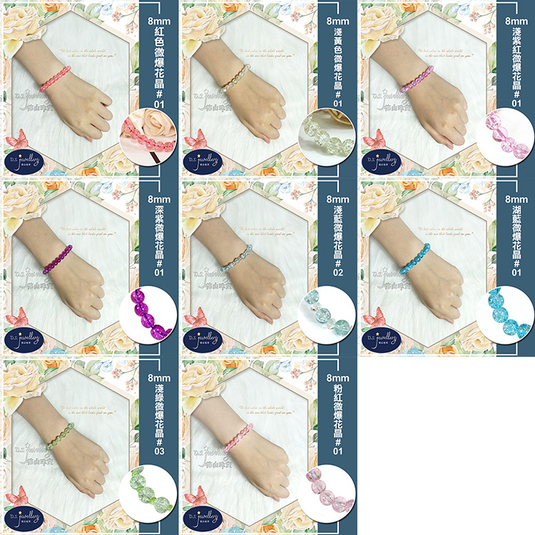 名稱:【德山珠寶】5A級8mm多色微爆花晶穿搭配色水晶琉璃造型手鍊(CE476)