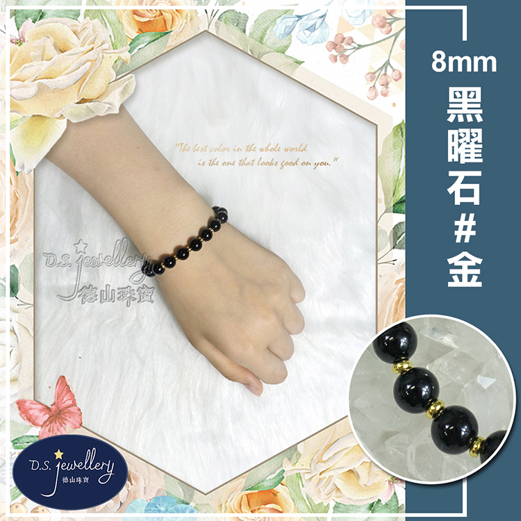 【德山珠寶】8mm天然烏金黑曜石造型手鍊(CE476)