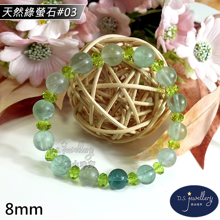 【德山珠寶】5A級8mm天然冰種綠螢石造型手鍊(CE476)