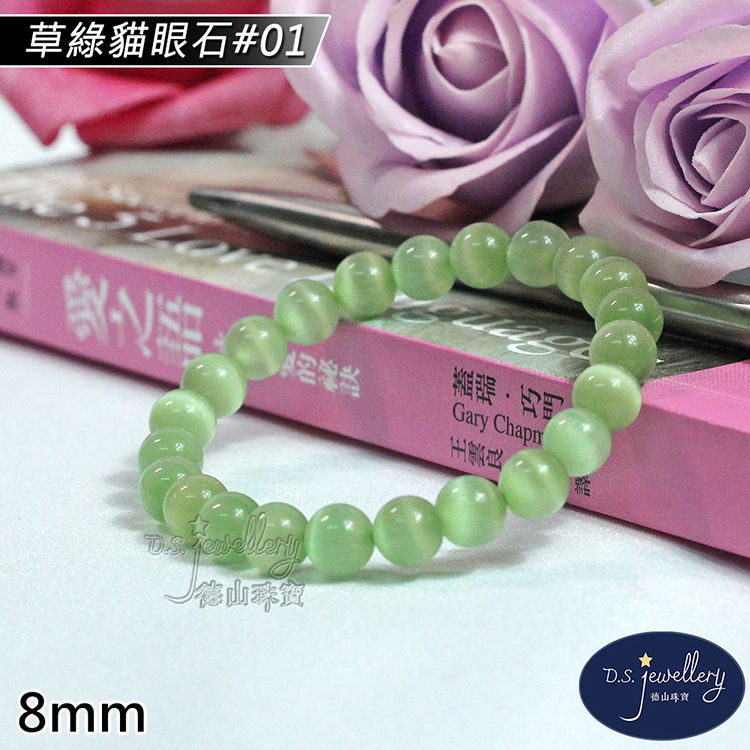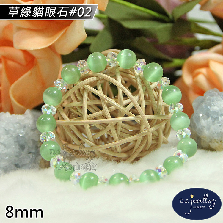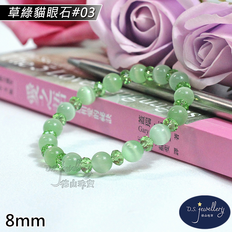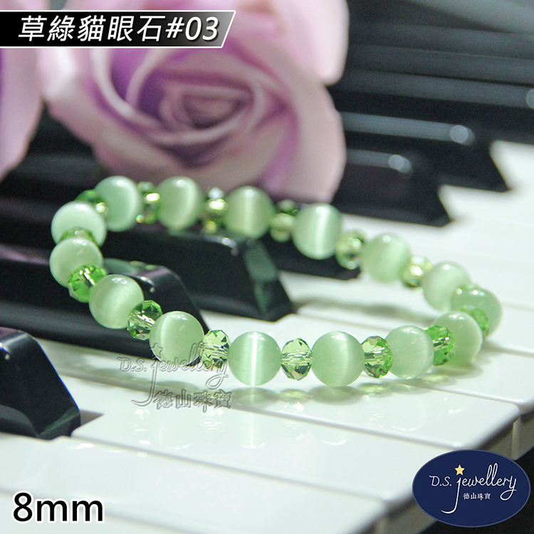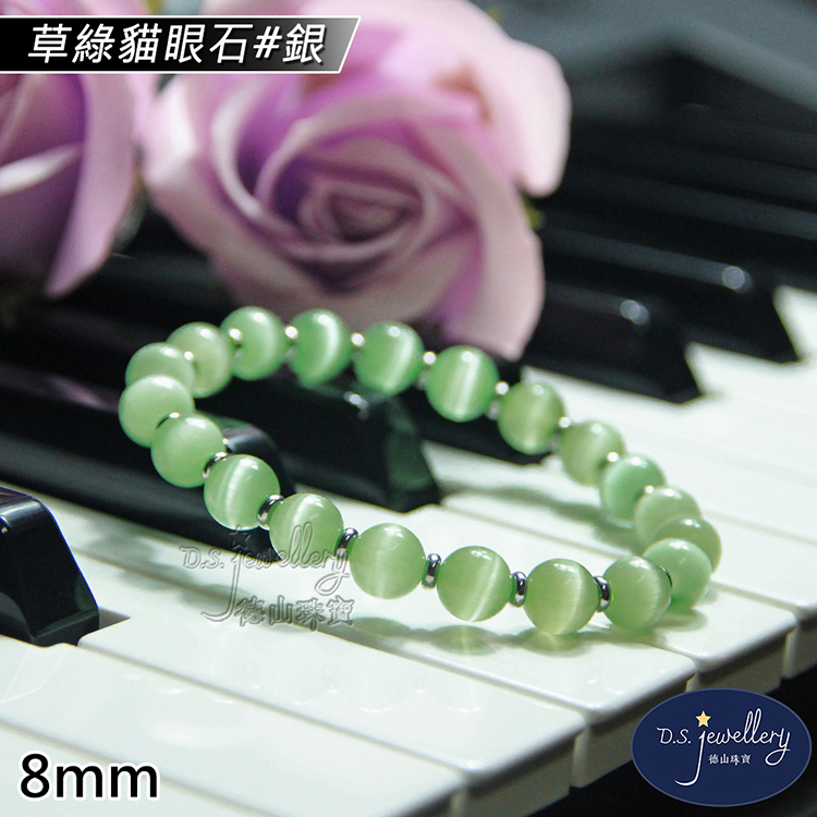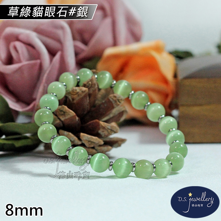 名稱:【德山珠寶】5A級8mm草綠貓眼石造型手鍊(CE476)