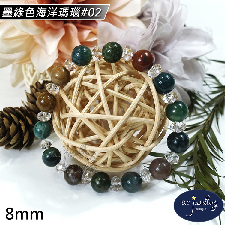 名稱:【德山珠寶】5A級8mm墨綠色海洋瑪瑙造型手鍊(CE476)