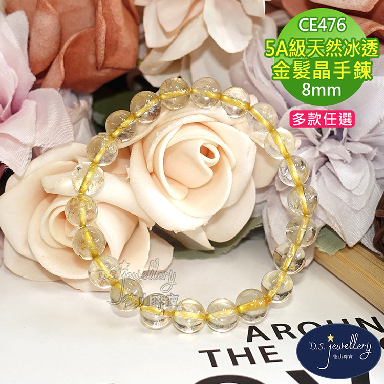 【德山珠寶】5A級8mm天然冰透金髮晶水晶造型手鍊(CE476)