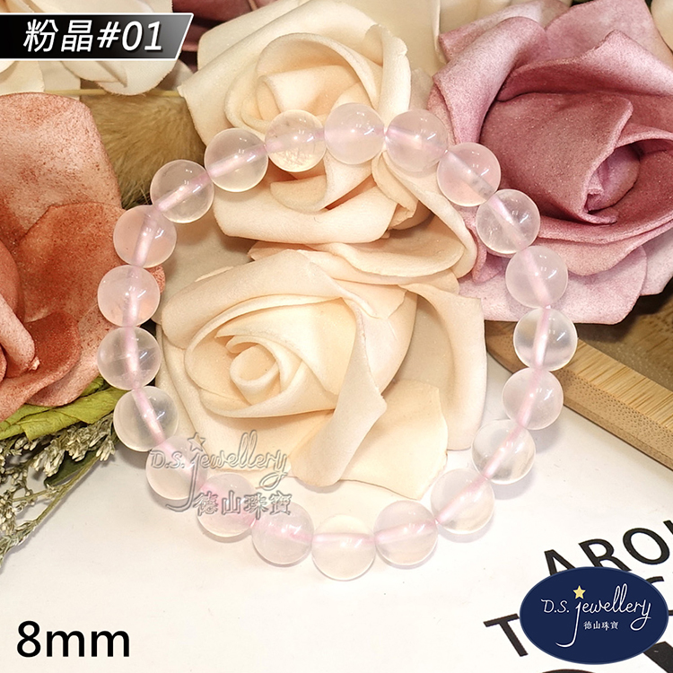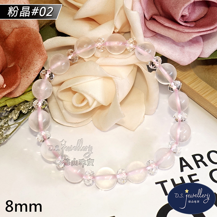 名稱:【德山珠寶】5A級8mm天然冰種粉水晶/粉晶粉紅水晶造型手鍊(CE476)