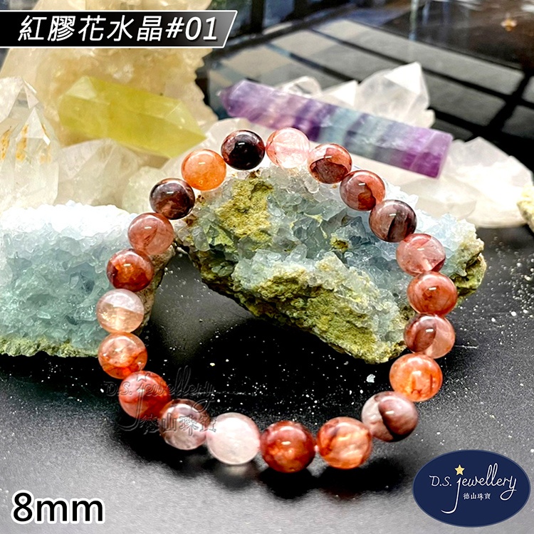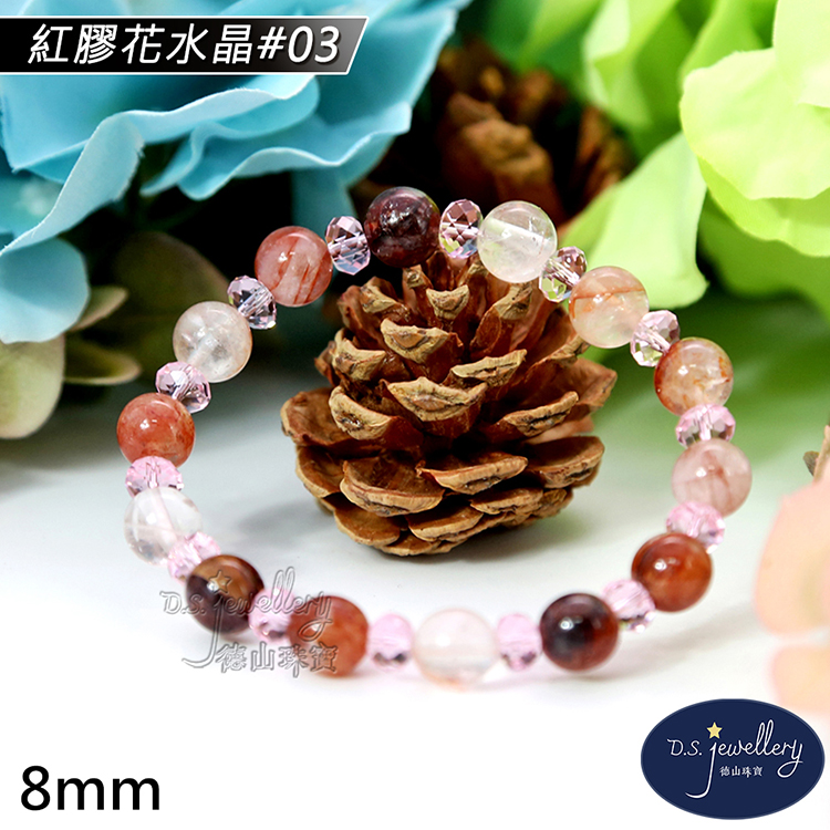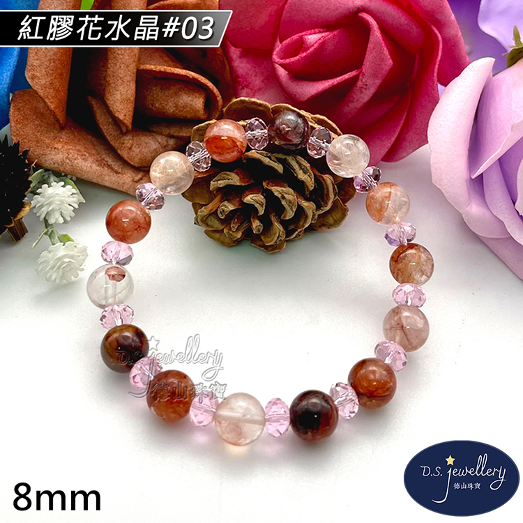 【德山珠寶】5A級8mm紅膠花水晶造型手鍊(CE476)