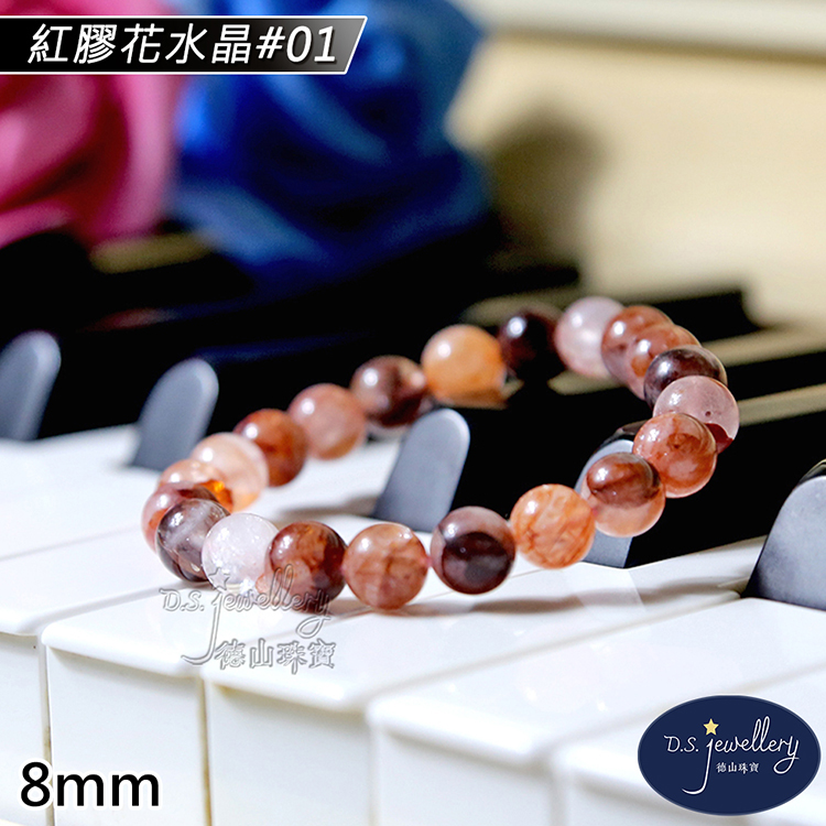 名稱:【德山珠寶】5A級8mm紅膠花水晶造型手鍊(CE476)