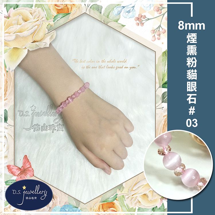 名稱:【德山珠寶】5A級8mm煙熏粉貓眼石造型手鍊(CE476)