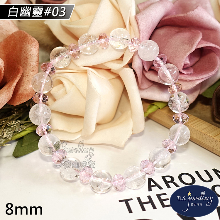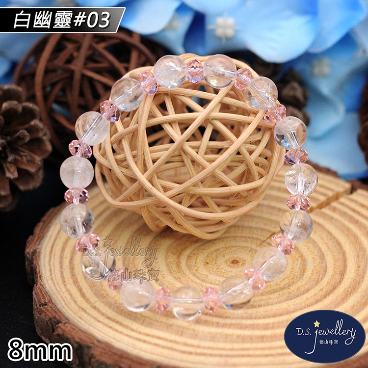 【德山珠寶】8mm天然異象水晶白幽靈造型手鍊(CE476)