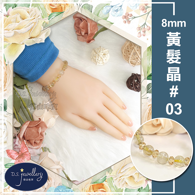 【德山珠寶】5A級8mm天然黃髮晶水晶造型手鍊(CE476)