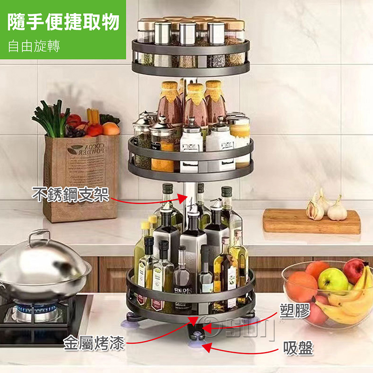 ♦旋轉調料瓶收納架,更大空間,大容量不佔地。