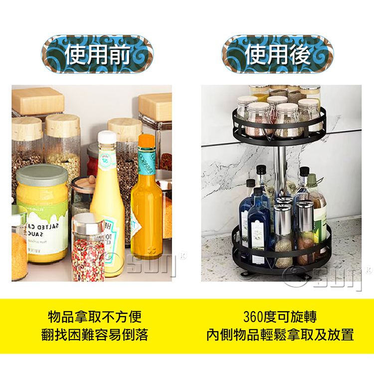 品名:【Osun】吸盤金屬雙層調料檯料理轉盤收納架廚房置物架 (CE480)