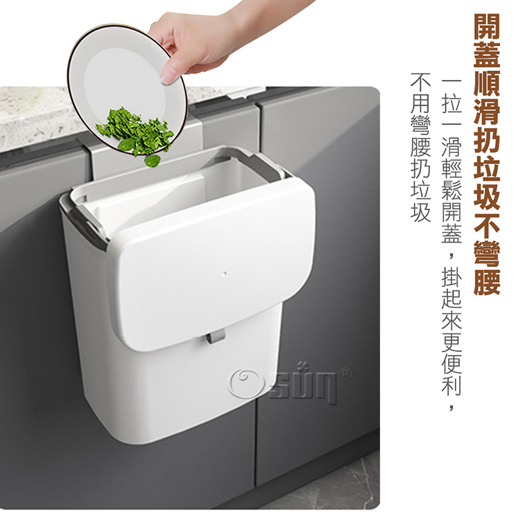 可掛置於櫃門上/抽屜上,廚餘垃圾隨心扔,保持潔淨。