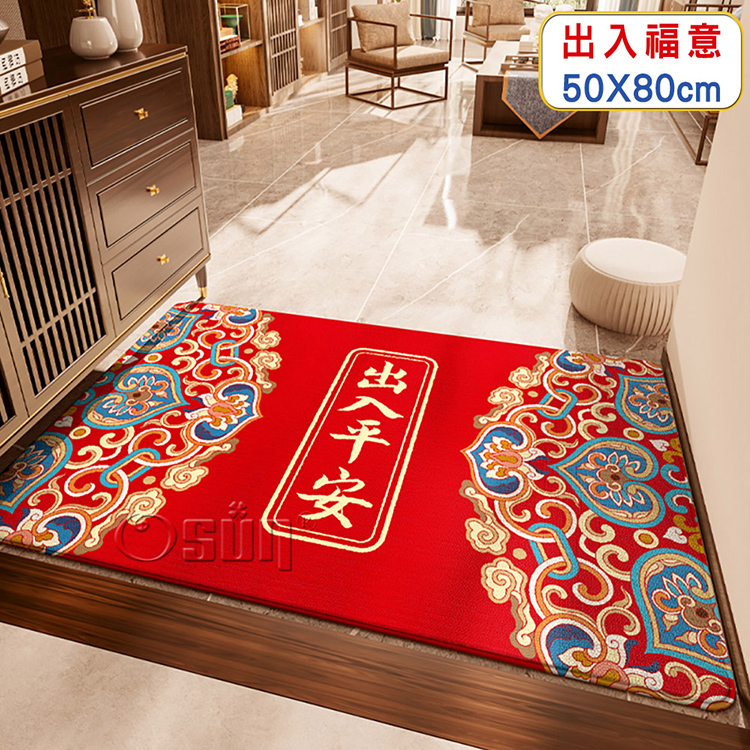 【Osun】中國風喜慶平安喜樂玄關大門客廳餐廳防滑吸水地墊地毯(50X80cm/CE482)