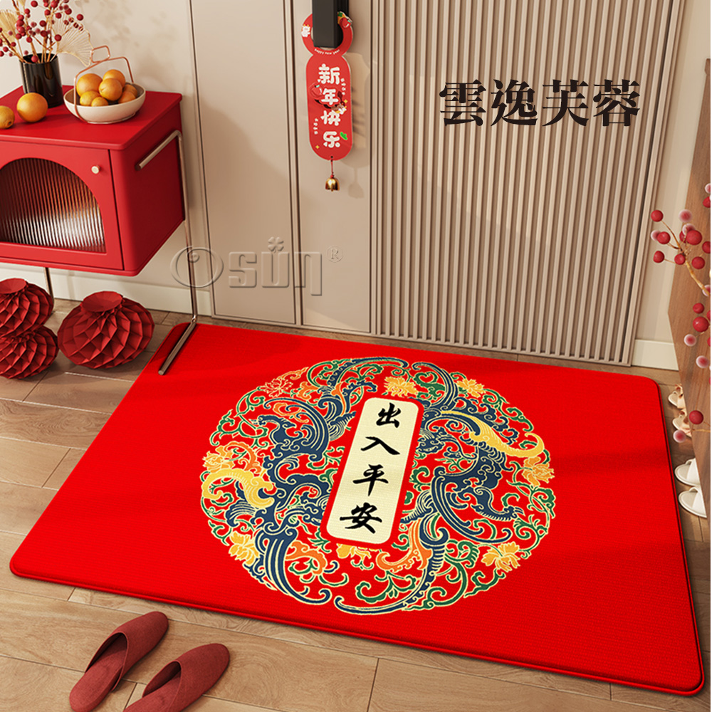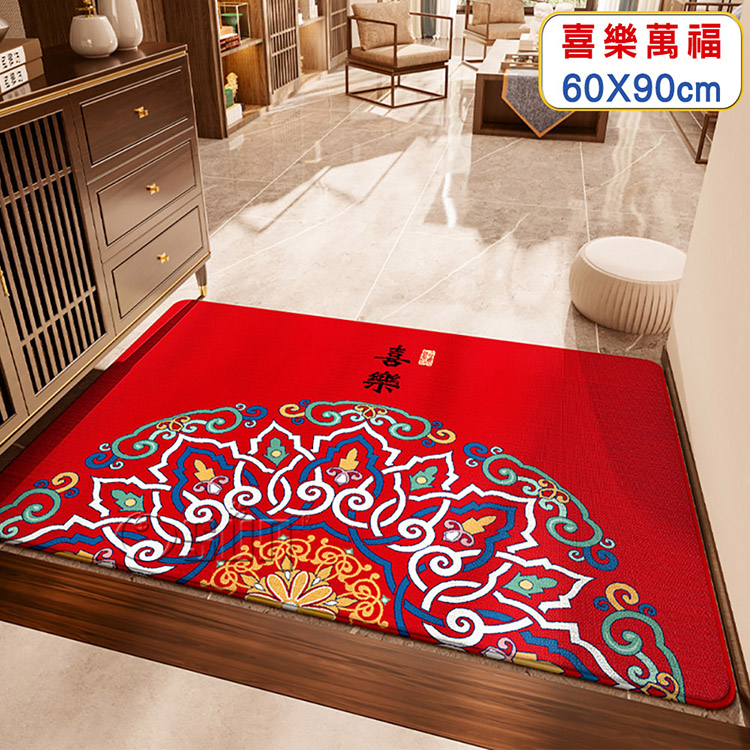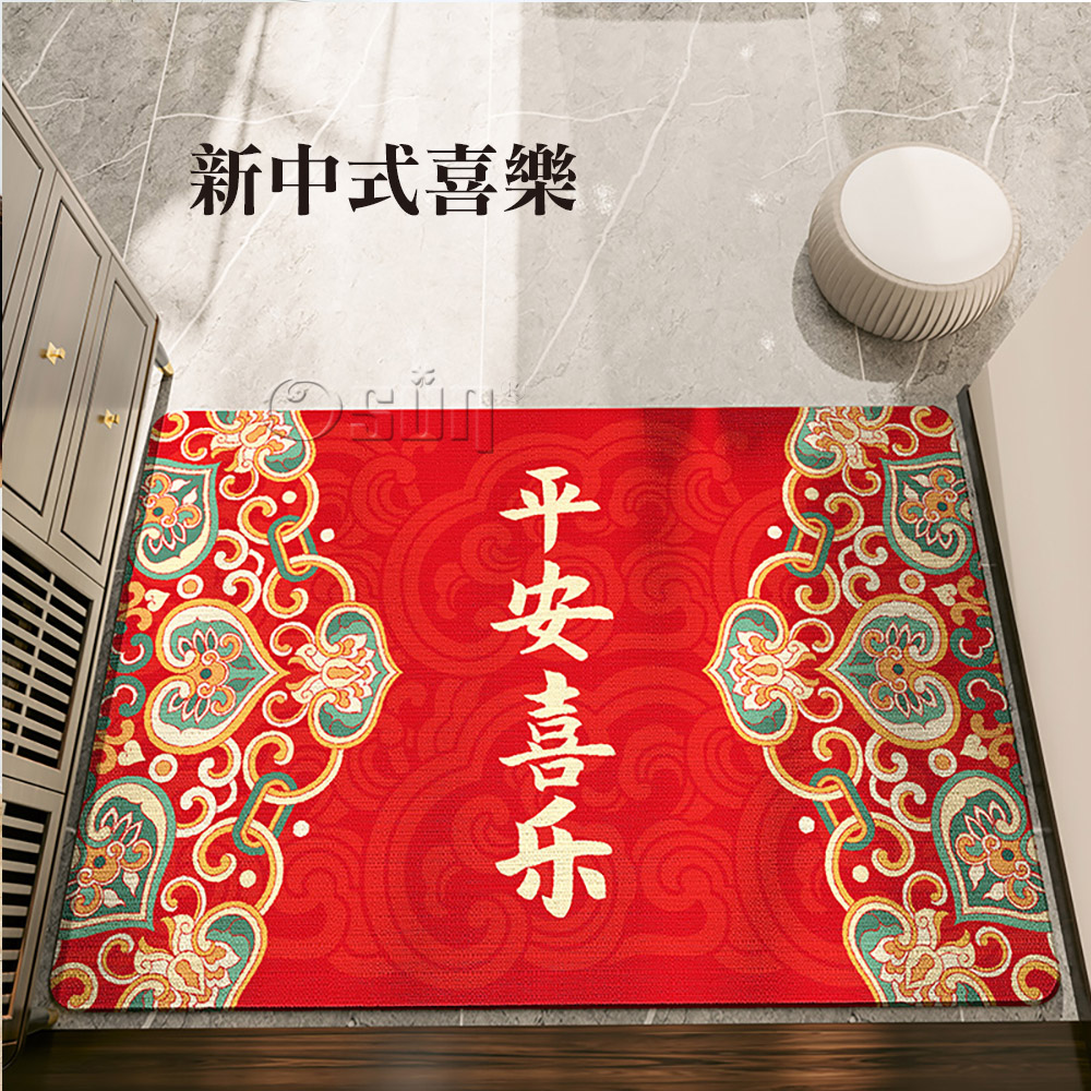 品名:【Osun】中國風喜慶平安喜樂玄關大門客廳餐廳防滑吸水地墊地毯(60X90cm/CE482)