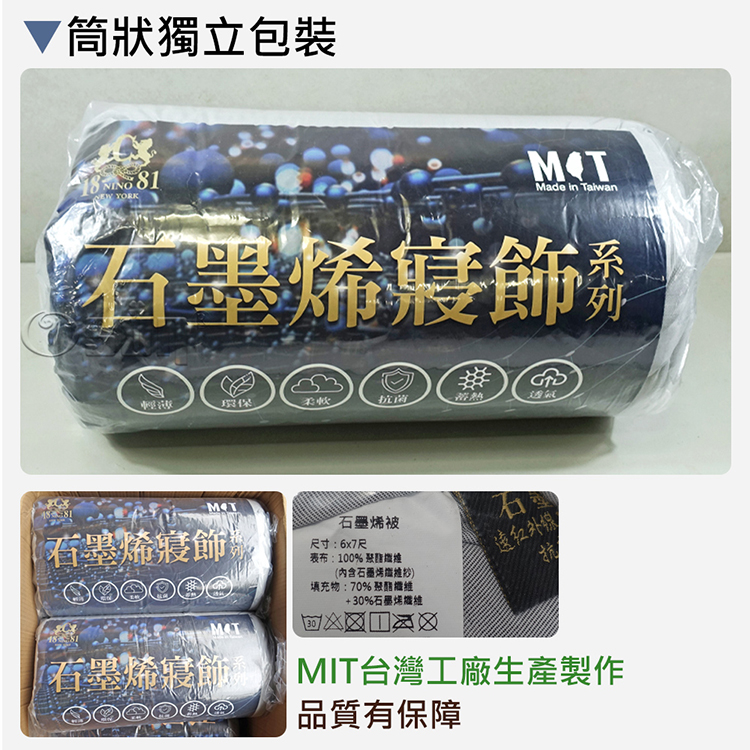 產品材質:表布-100%聚酯纖維(內含石墨烯纖維紗),填充物-70%聚酯纖維+30%石墨烯纖維