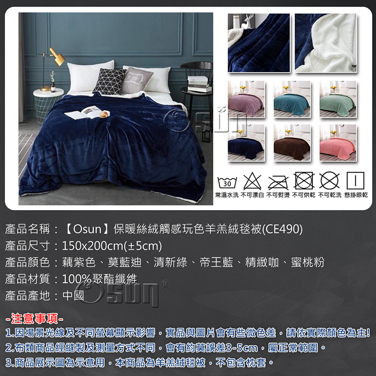 產品名稱:【Osun】保暖絲絨觸感玩色羊羔絨毯被(CE490)