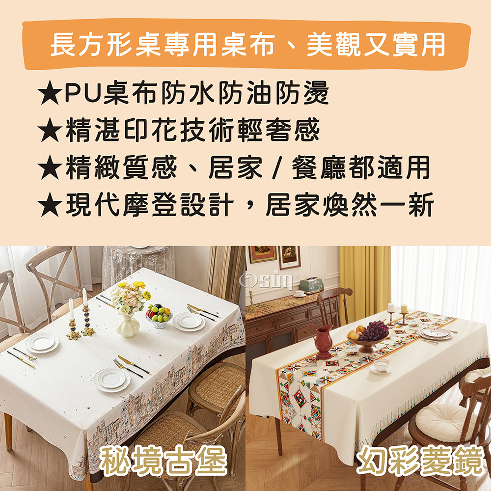 品名:【Osun】140*140cm長方形印花輕奢美化餐桌防水防油防燙免洗桌布加厚桌巾(PU/CE494)