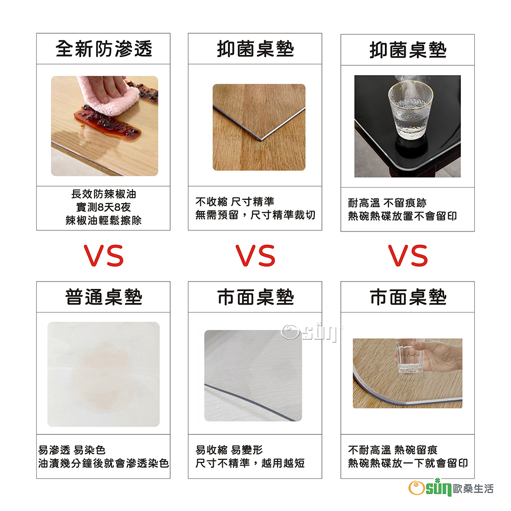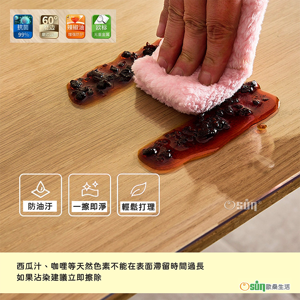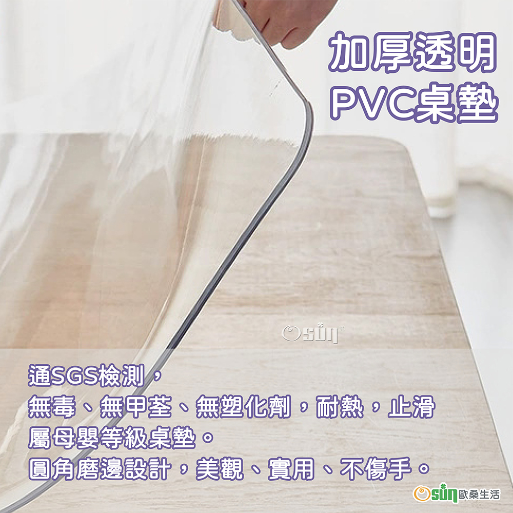 品名:【Osun】90X150cm加厚2.0mm抗菌口含級無味軟玻璃環保防水防油防滑圓角磨邊透明PVC桌墊桌巾(CE494)