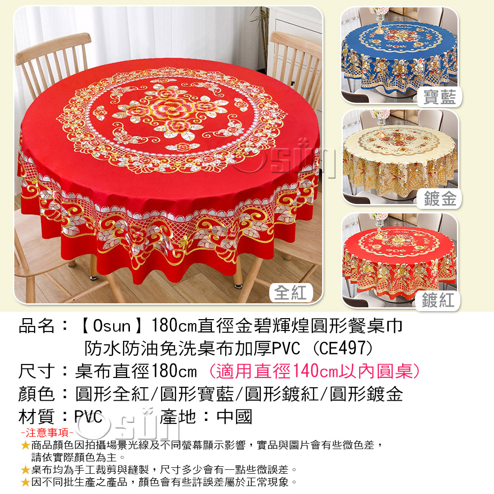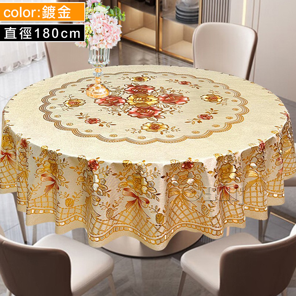品名:【Osun】180cm直徑金碧輝煌圓形餐桌巾防水防油免洗桌布加厚PVC (CE497)