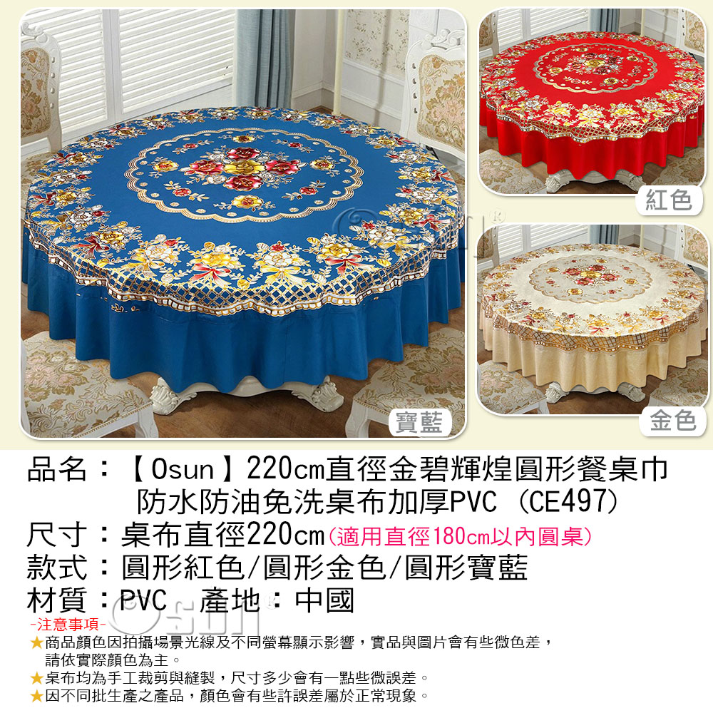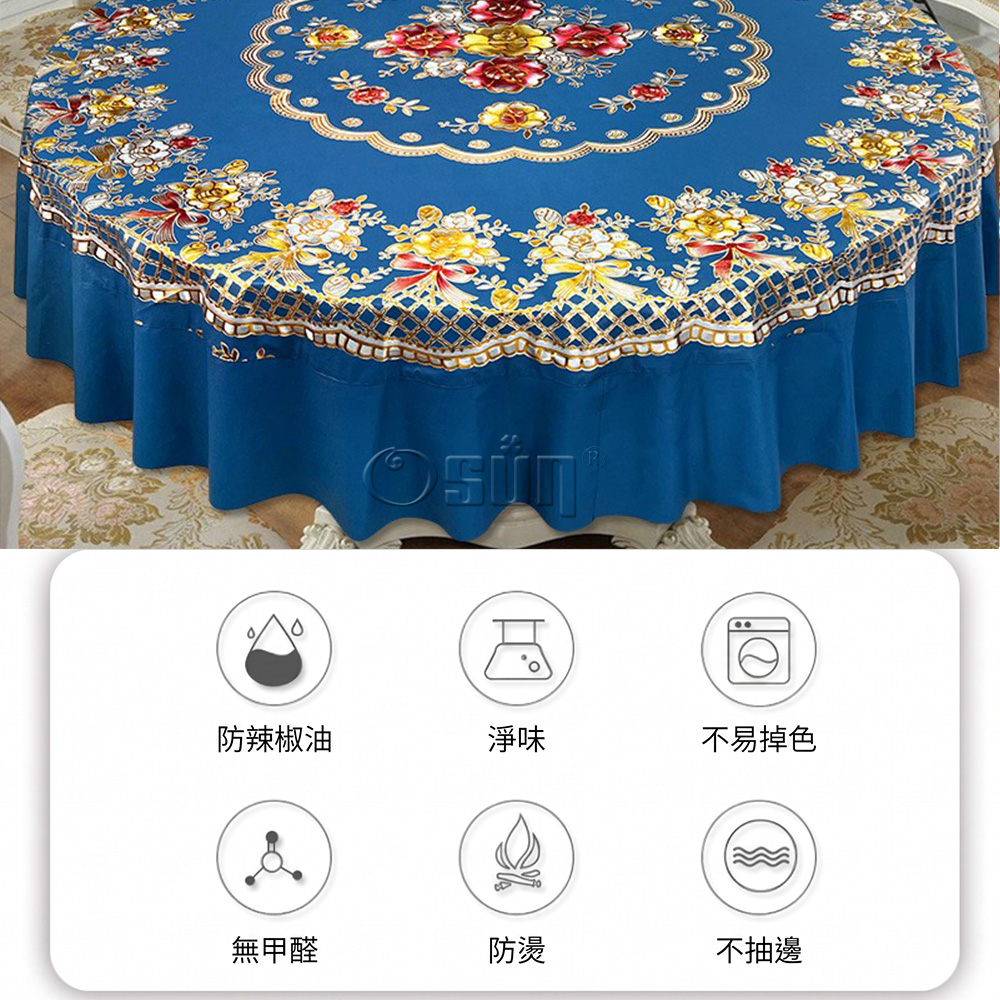 品名:【Osun】220cm直徑金碧輝煌圓形餐桌巾防水防油免洗桌布加厚PVC (CE497)