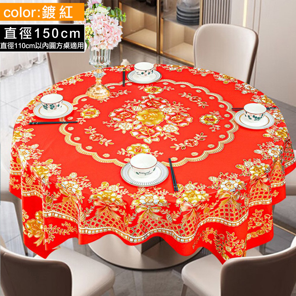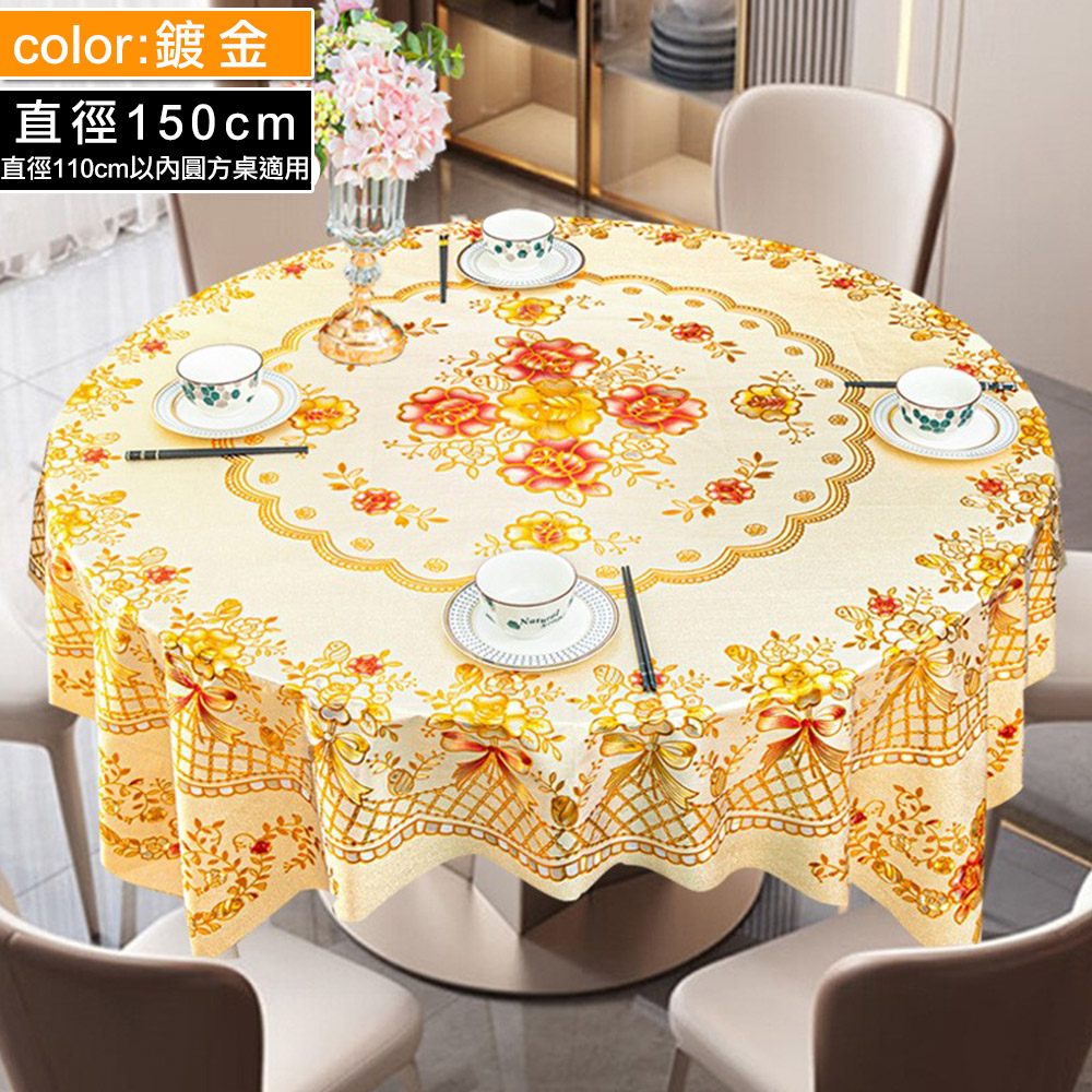 【Osun】150cm直徑邊長金碧輝煌方圓兩用餐桌巾防水防油免洗桌布加厚PVC (CE497)