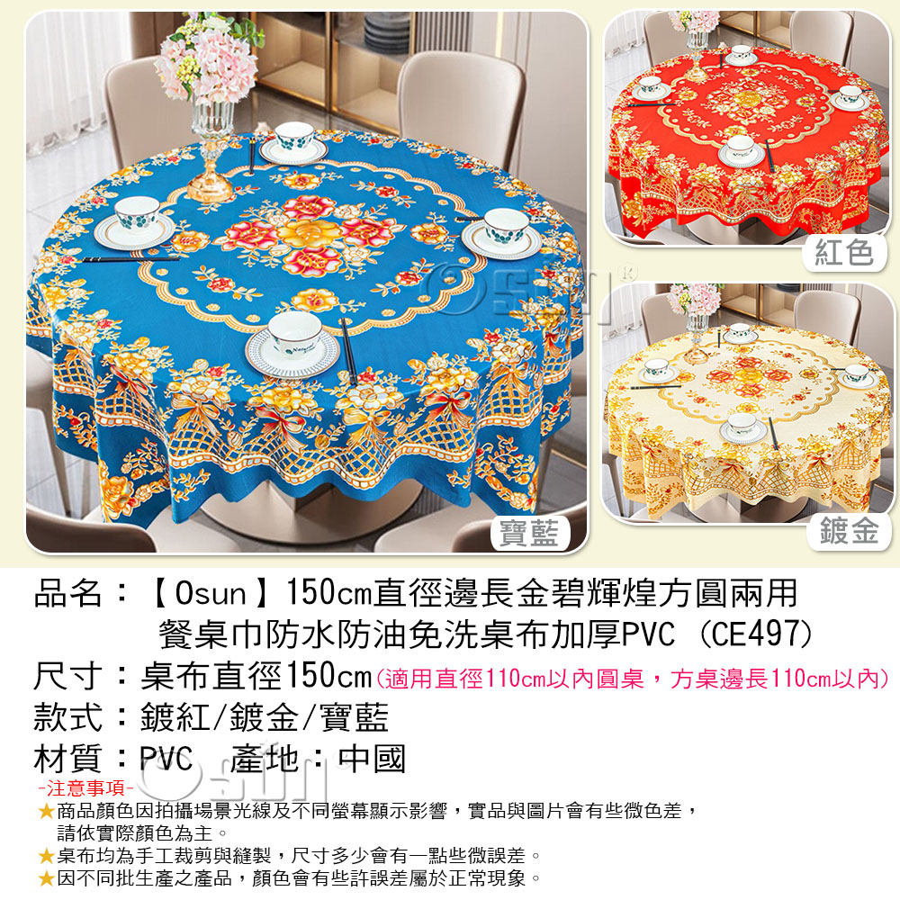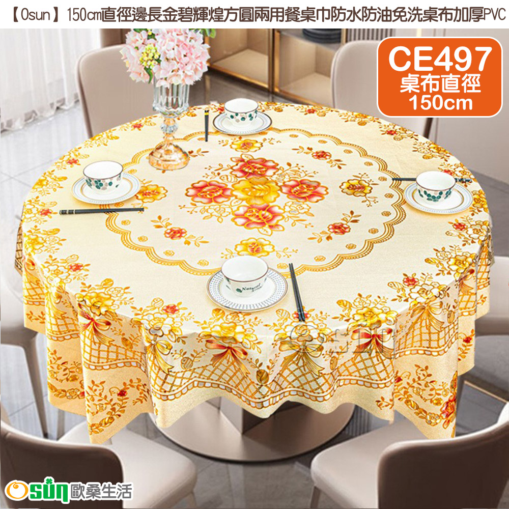 品名:【Osun】150cm直徑邊長金碧輝煌方圓兩用餐桌巾防水防油免洗桌布加厚PVC (CE497)