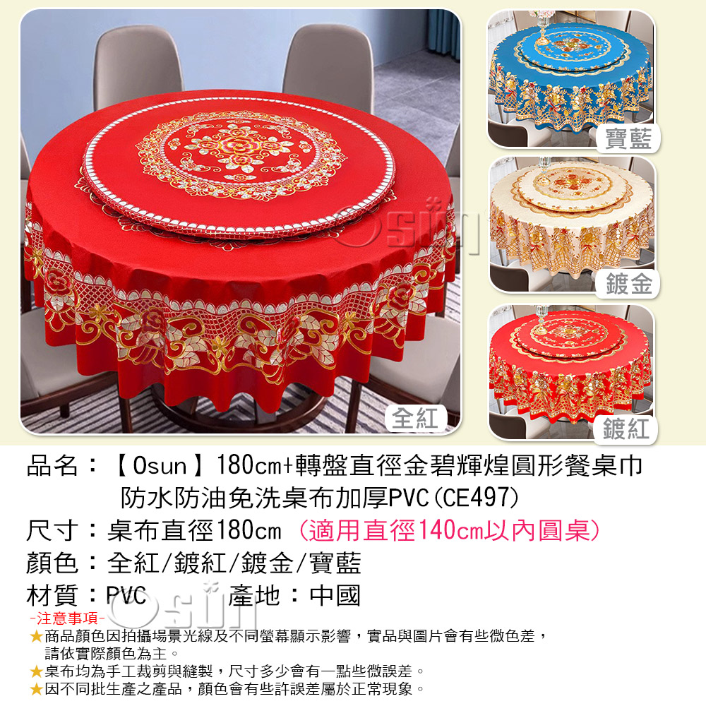 【Osun】180cm+轉盤直徑金碧輝煌圓形餐桌巾防水防油免洗桌布加厚PVC(CE497)