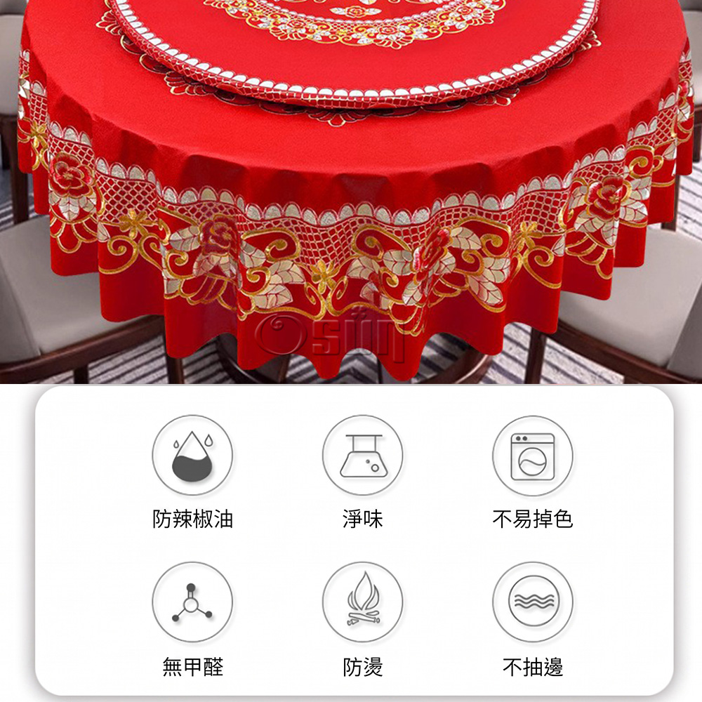 品名:【Osun】180cm+轉盤直徑金碧輝煌圓形餐桌巾防水防油免洗桌布加厚PVC(CE497)