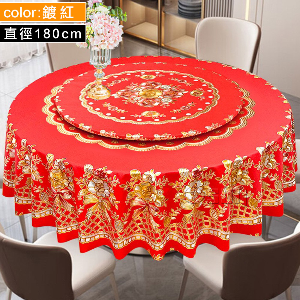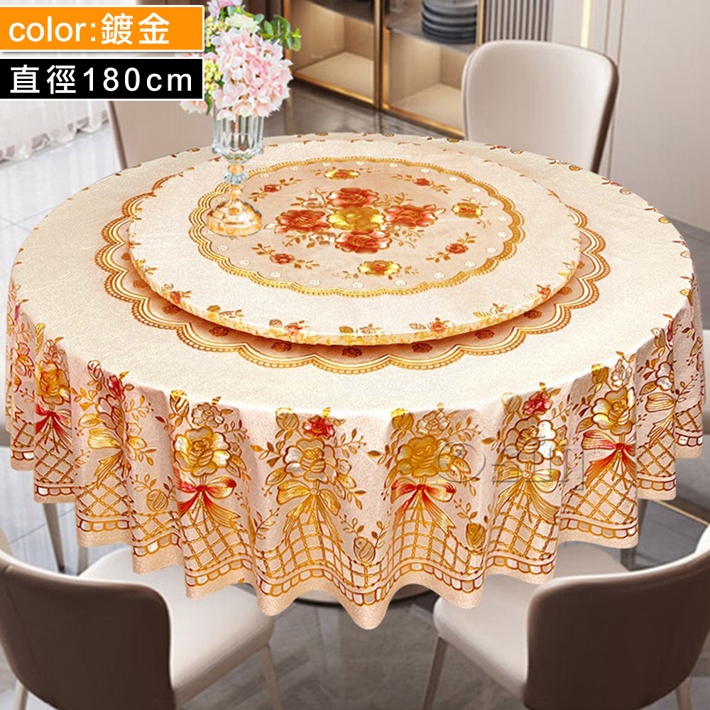 品名:【Osun】180cm+轉盤直徑金碧輝煌圓形餐桌巾防水防油免洗桌布加厚PVC(CE497)