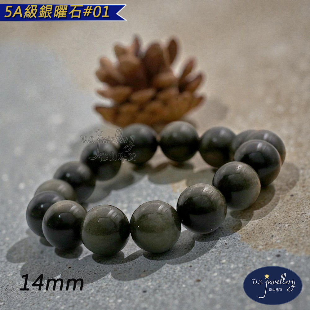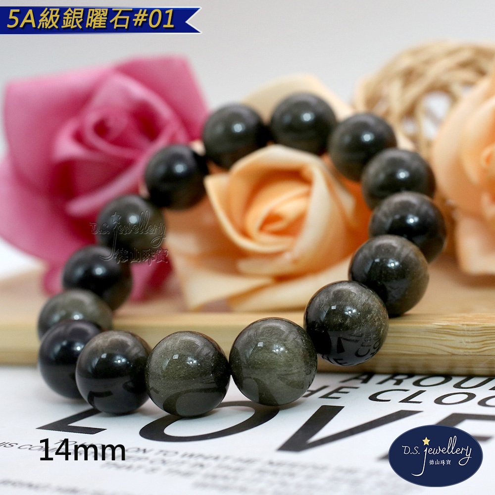 名稱:【德山珠寶】5A級14mm銀曜石水晶手鍊(CE476)