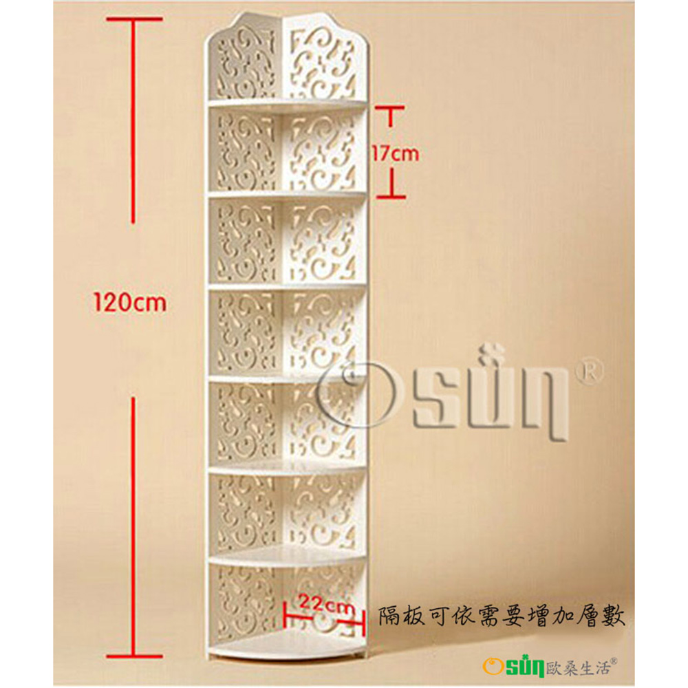品名:DIY木塑板白色雕花七層層架轉角層架(CE178-120ZJ)