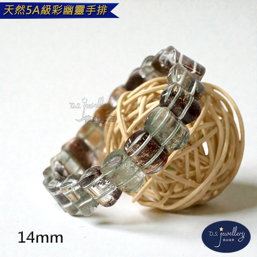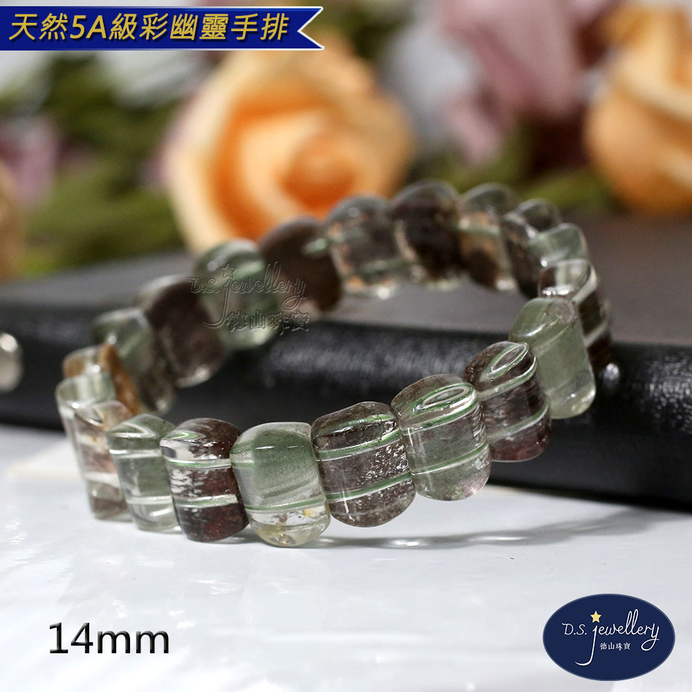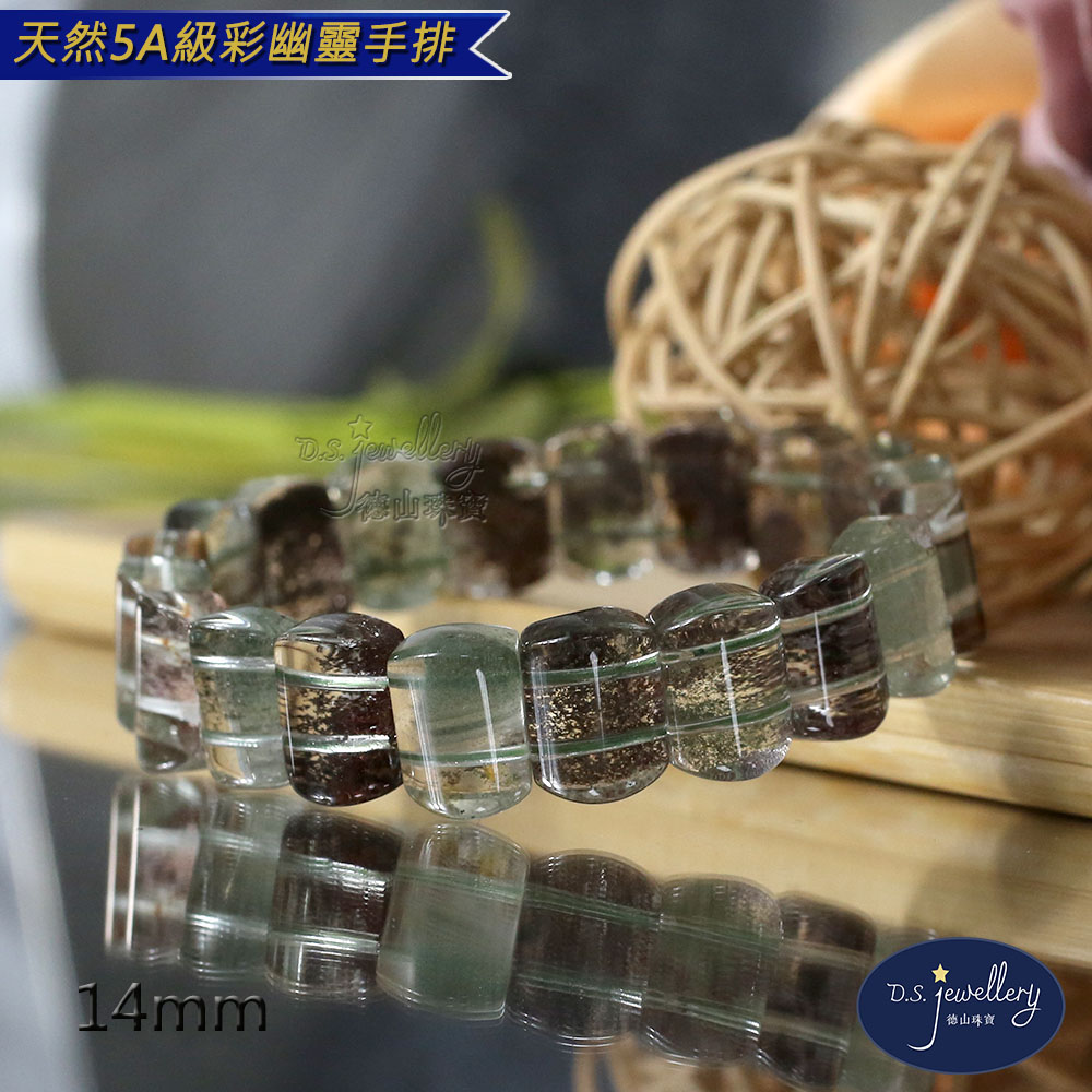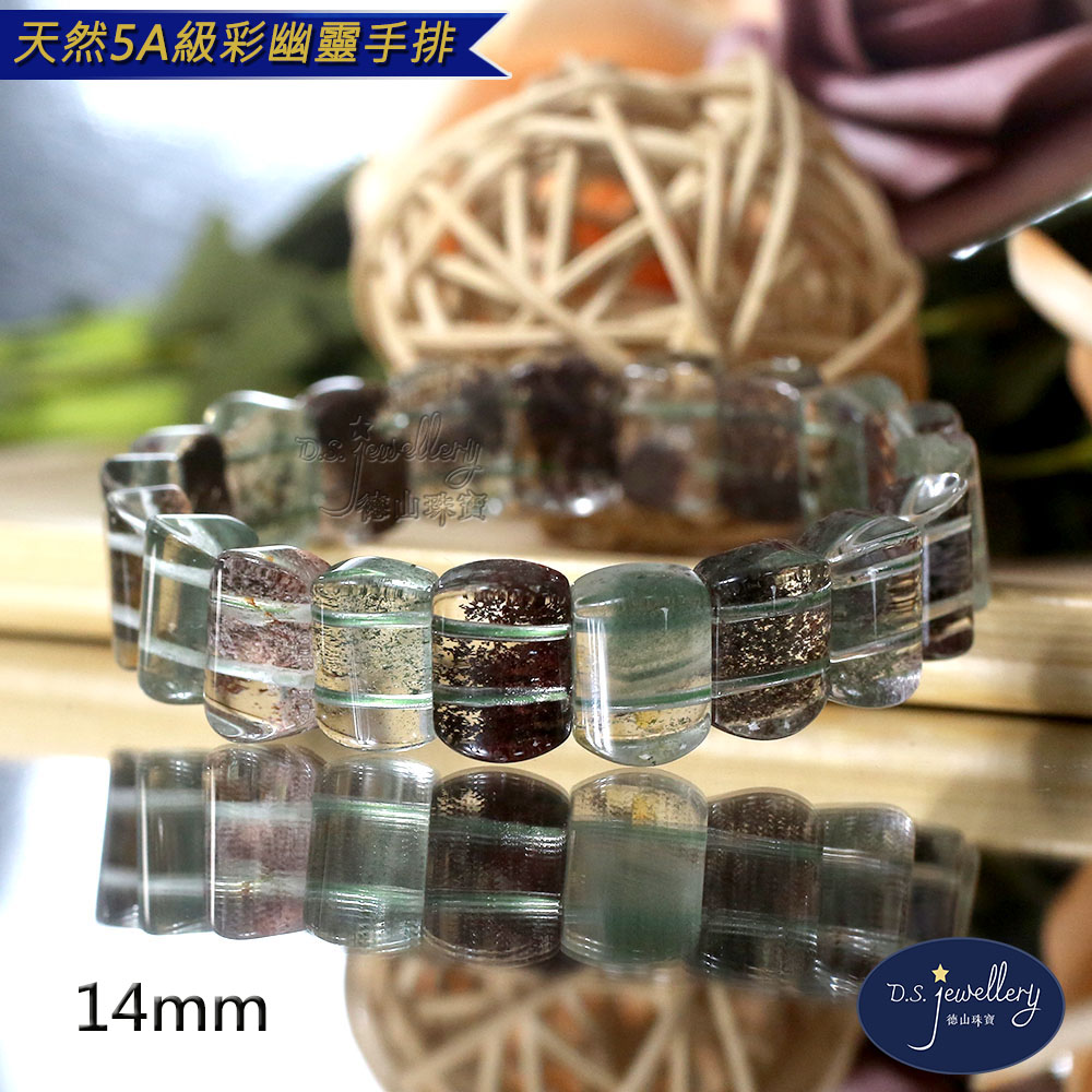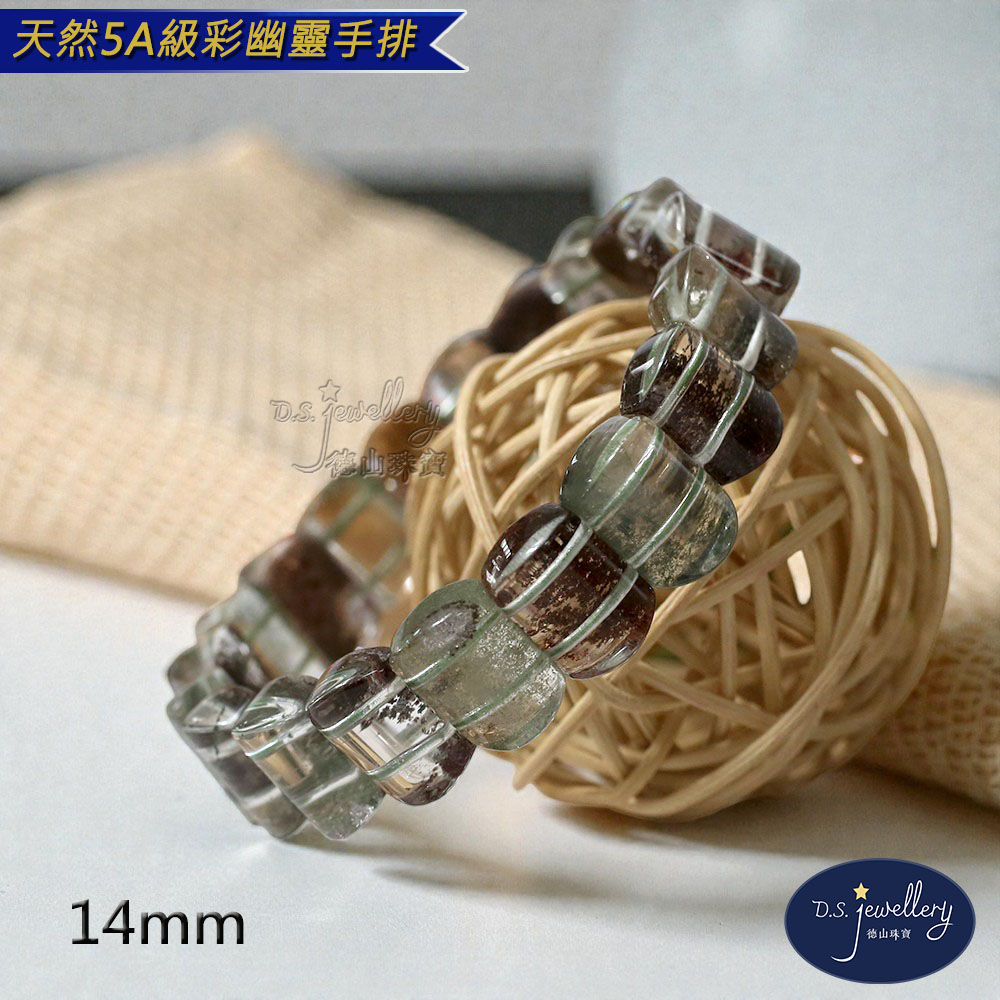 材質:5A級14mm天然彩幽靈水晶手排