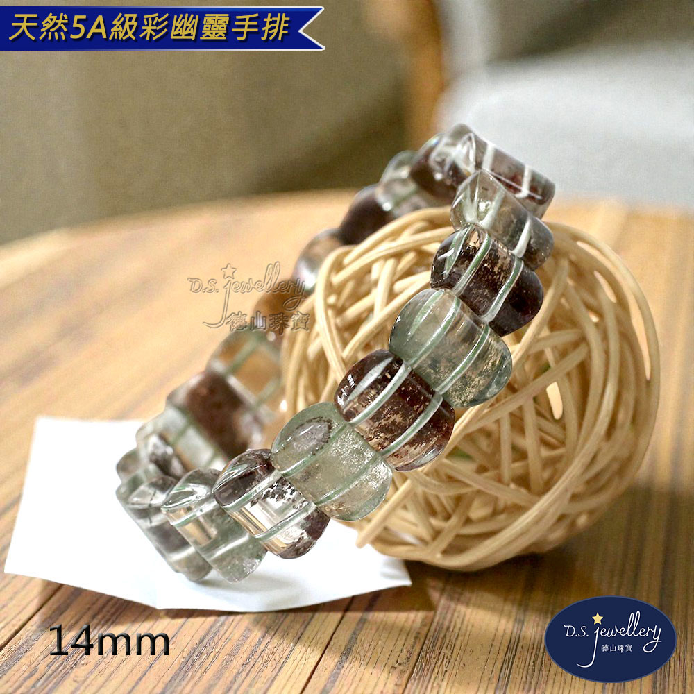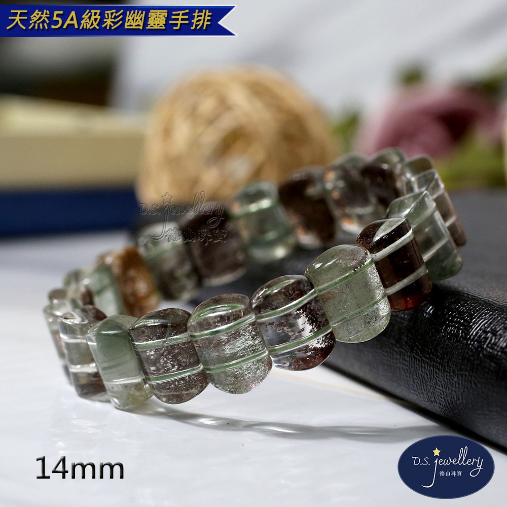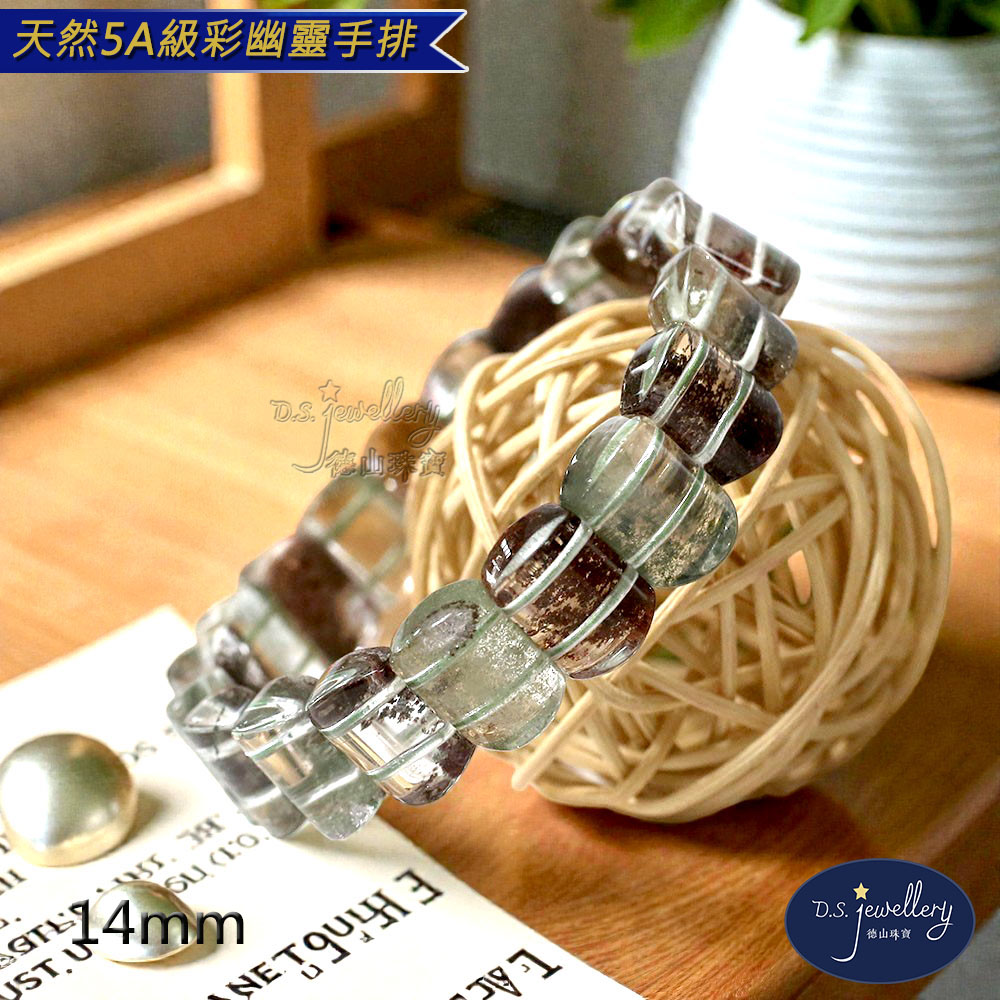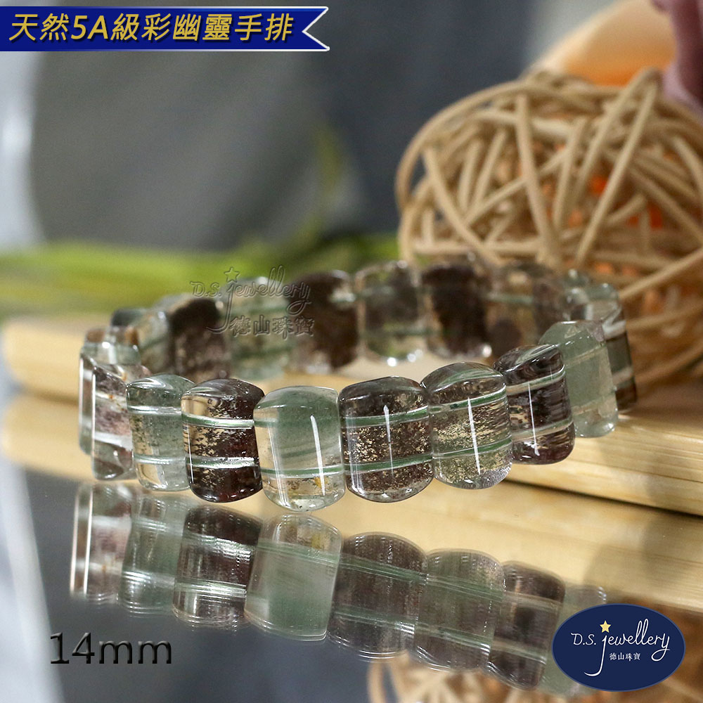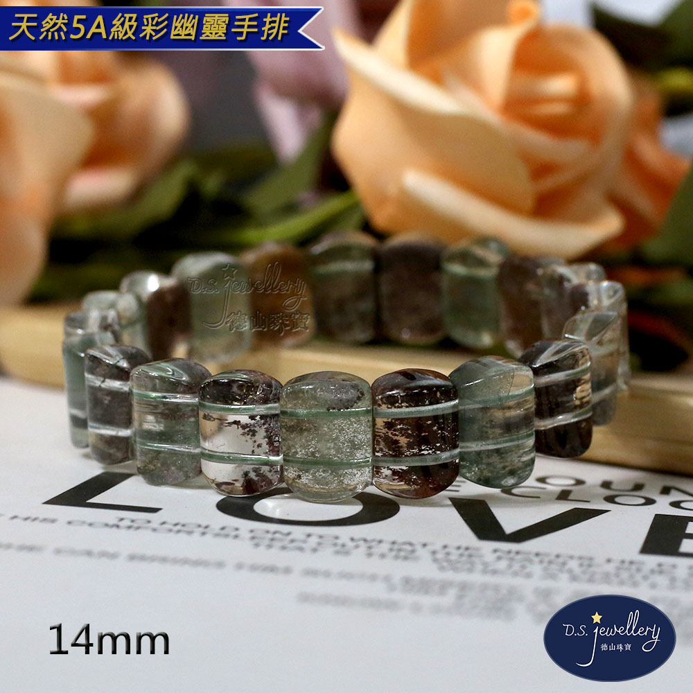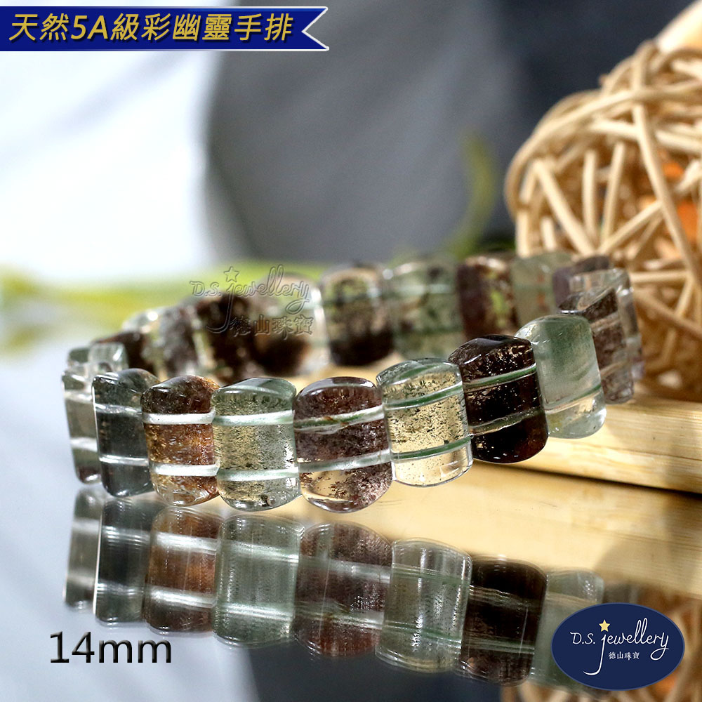 材質:5A級14mm天然彩幽靈水晶手排