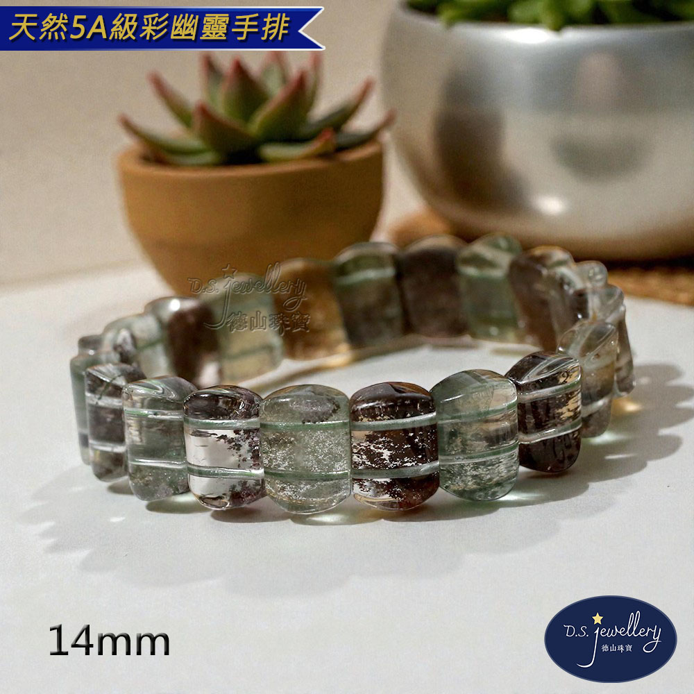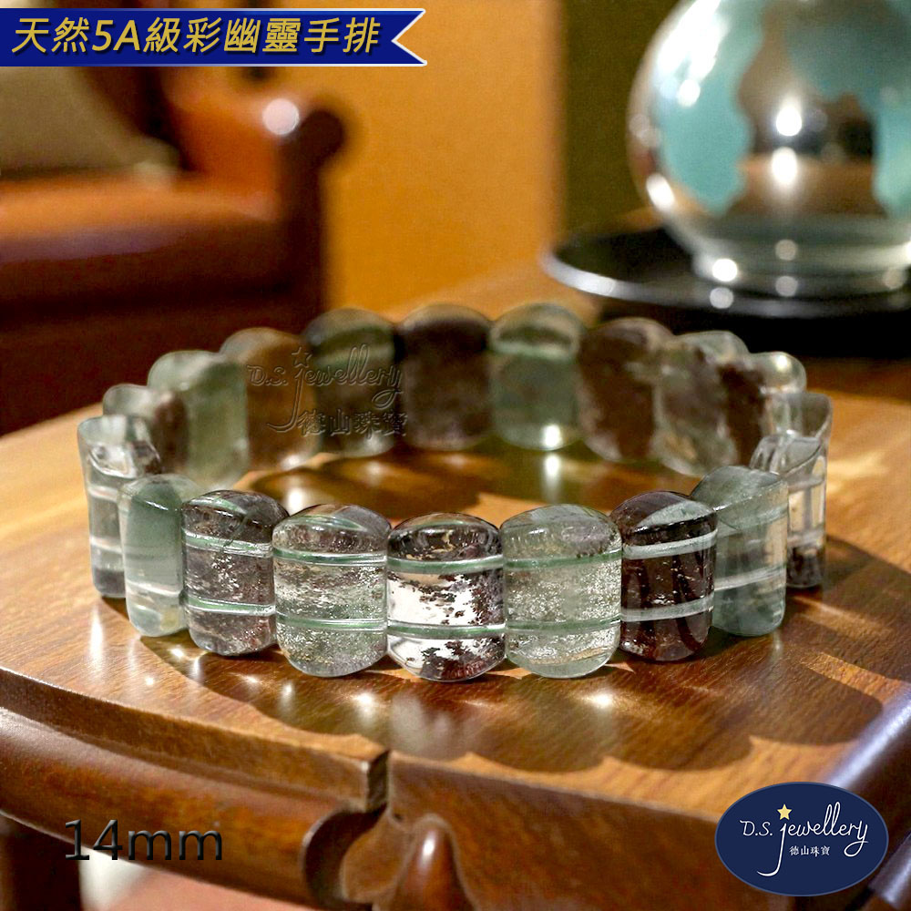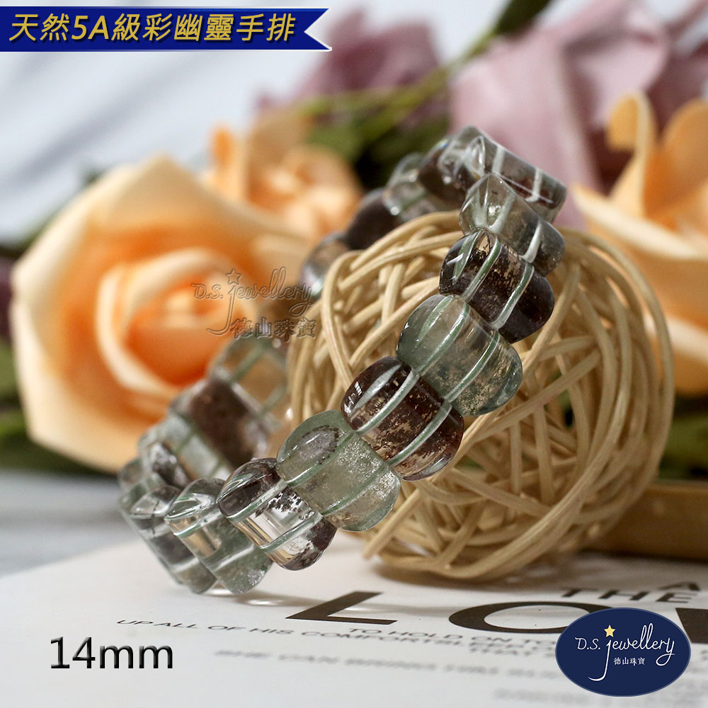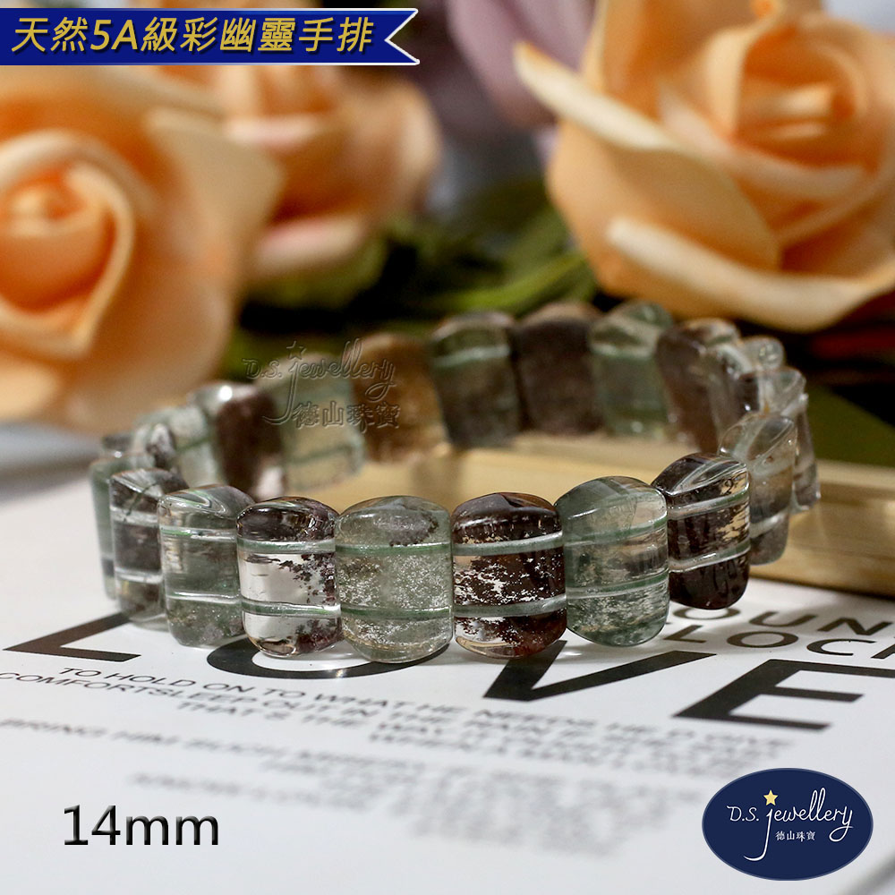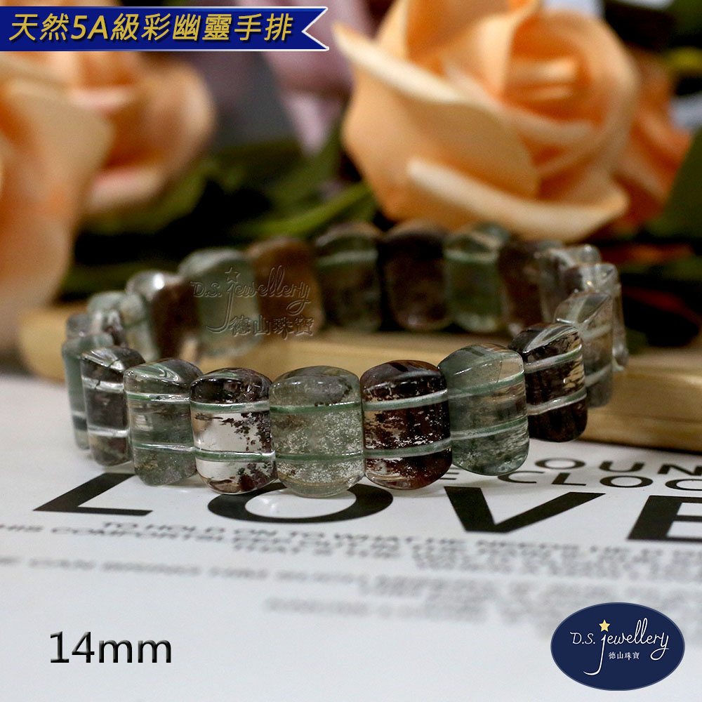 材質:5A級14mm天然彩幽靈水晶手排